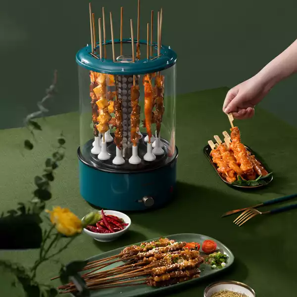 Lò nướng quay không khói được thiết kế với 12 xiên nướng cùng với công suất nấu rộng rãi, cho phép bạn nướng nhiều miếng thịt hoặc các món xiên khác cùng lúc, rất lý tưởng cho các buổi họp mặt gia đình hoặc tiệc tùng.